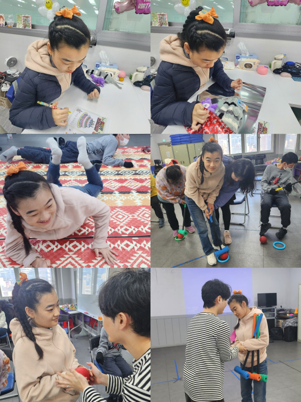 11시부터 12시까지는 어댑핏 수업에 참여해 간단한 스트레칭 및 소근육활동을 했습니다