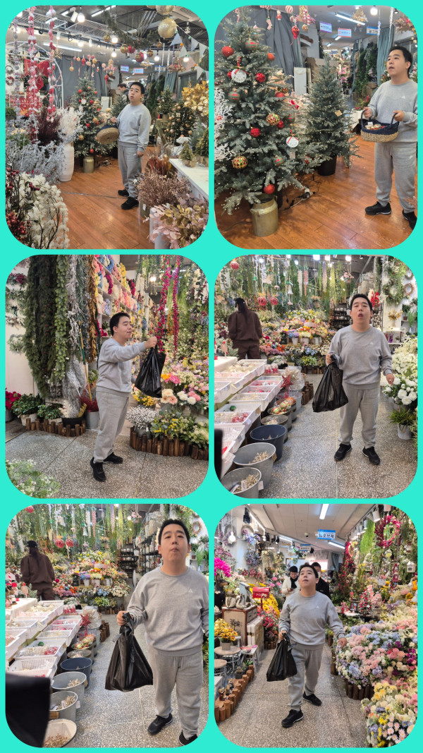 오전에는 크리스마스 트리 재료를 사기 위해 평화 시장을 다녀왔습니다.