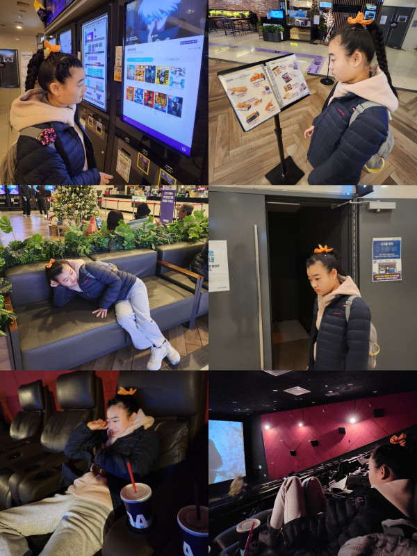 처음에는 리클라이너를 낯설어했는데 편히 기대어 사이다를 마시며 영화를 보았습니다