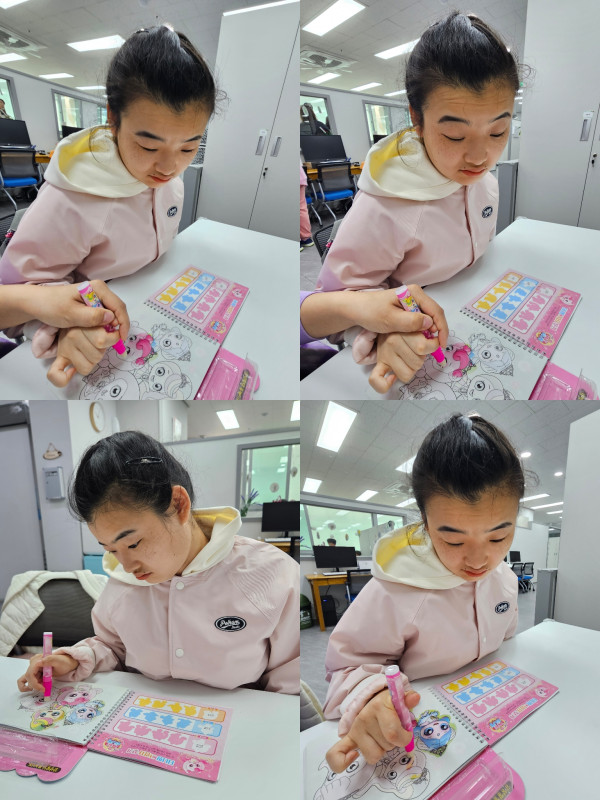 우리 환희씨 펜을 꼬옥 쥐고 손을 살짝살짝 움직였습니다