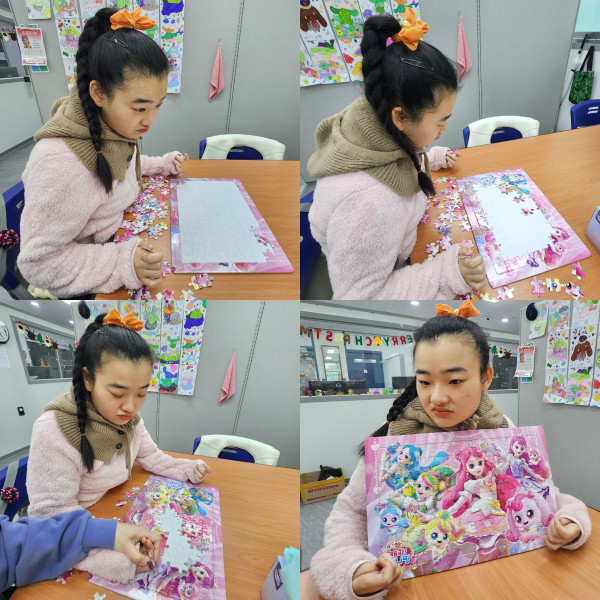 손을 잡고 함께 퍼즐을 맞춰보았습니다