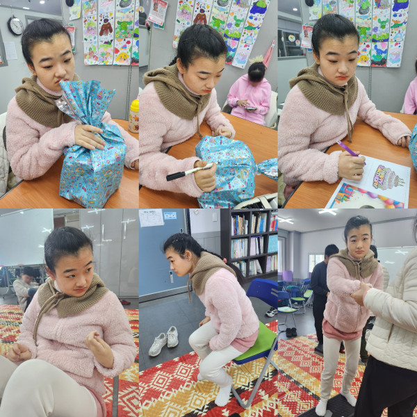 오늘 생일인 다른 이용자의 생일선물을 포장하고 편지지를 색연필로 알록달록하게 꾸며보았습니다