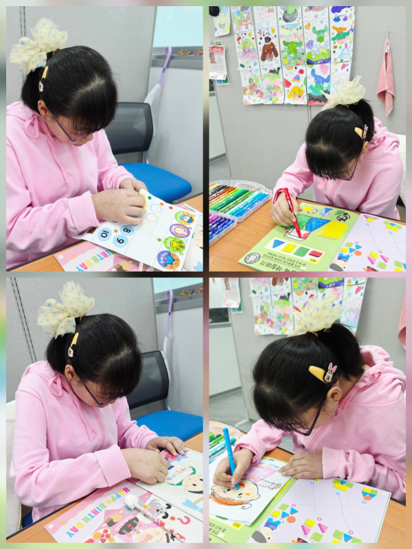 이용자가 좋아하는 숫자 쓰기와 스티커 붙이기, 도형 익히기 활동했습니다.