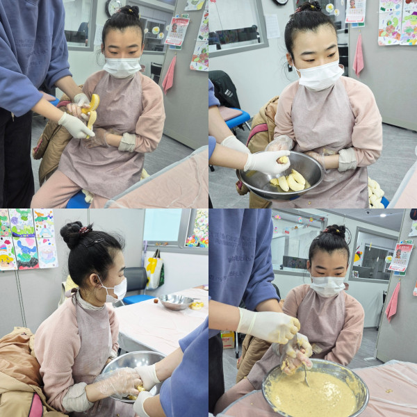 요리활동으로 바나나와 그릭요거트를 이용한 저당빵을 만들어보았습니다