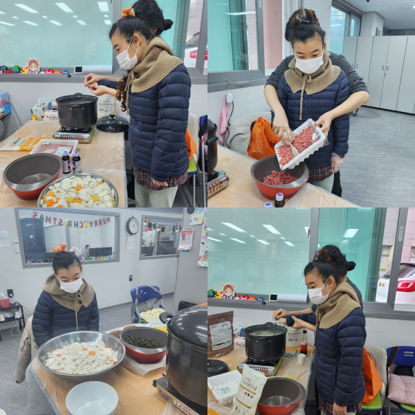점심시간에는 떡국과 다른 이용자들이 만든 떡갈비 꼬치산적 잡채 매운양념갈비 고추튀김 등등을 맛있게 먹었습니다