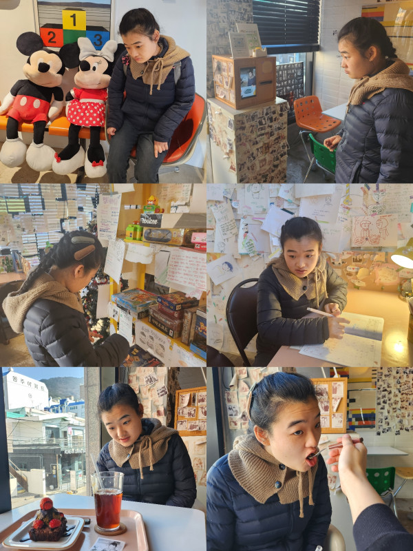 달달한 디저트가 환희입에 맞았는지 입을 쩍벌리며 신난 미소를 보여주었습니다