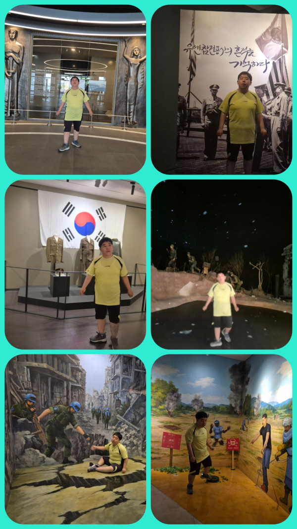 오후에는 유엔 평화 기념관을 방문하여 6.25 전쟁관 ,참전 군 등 여러 코너를 관람하였습니다.