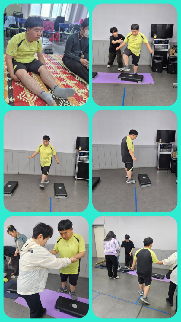 오전에는 욕구 조사와 어댑핏을 하였습니다.스탭박스를 이용하여 협응력과 민첩성 향상 운동을 하였습니다.
