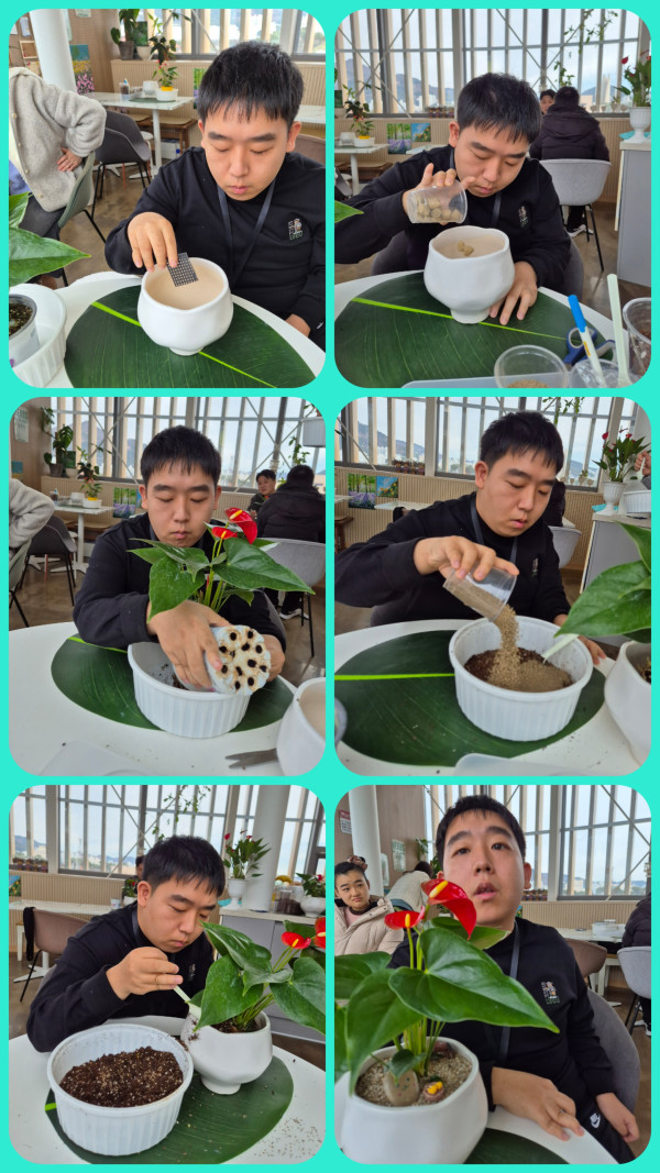 안수리움을 토기 화분에 심고 기르는 법을 배웠습니다. 화훼 단지에서 예쁜 꽃도 구경하였습니다.