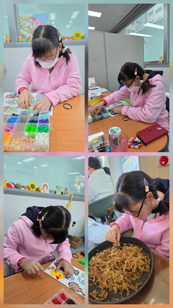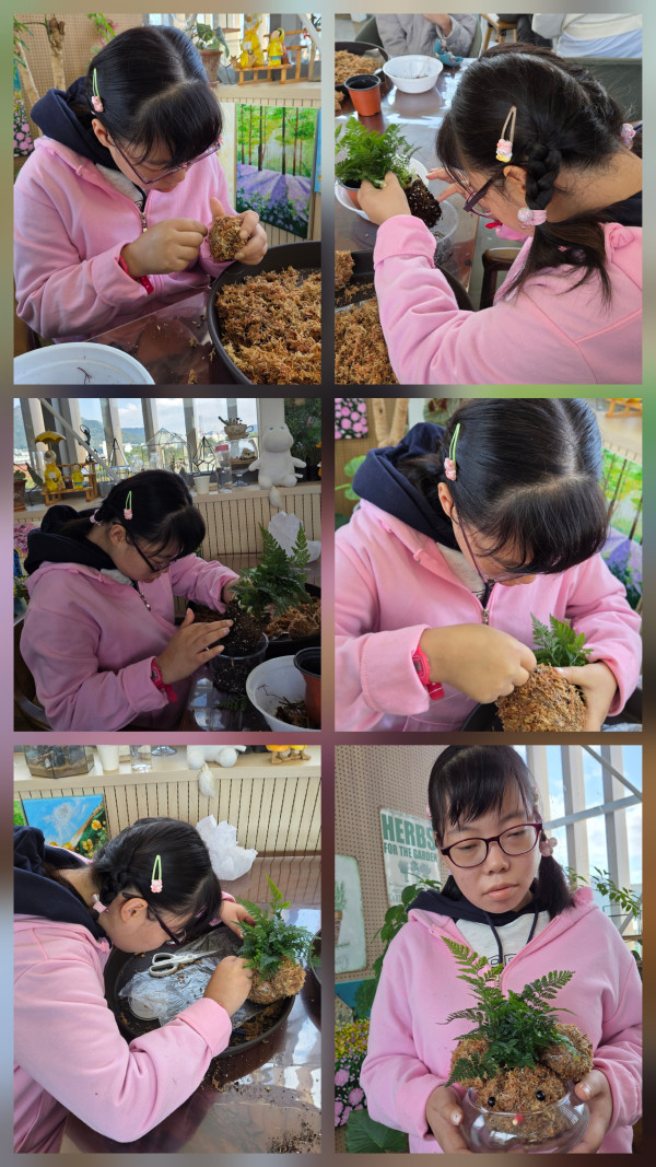 꽃꽂이 수업으로 공기정화식물 물이끼를 이용한 토피어리 만들기 활동 이후 산책 활동 진행했습니다.