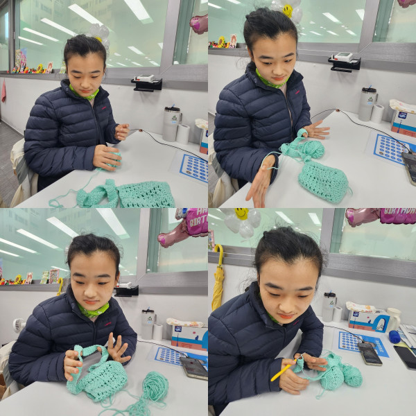 자꾸 놓치긴 했지만 실뭉치를 꼭 쥐어주었습니다