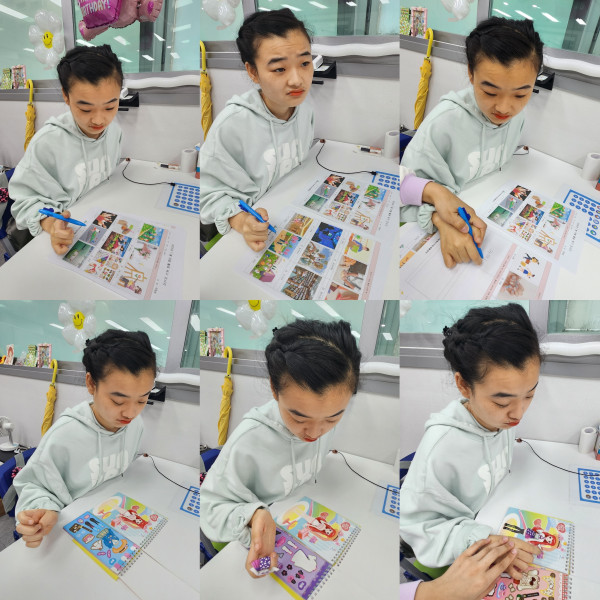 오늘은 펜도 잘 쥐고 스티커도 잘 쥐고 말랑말랑 촉감의 공도 잘 쥐고 있었습니다