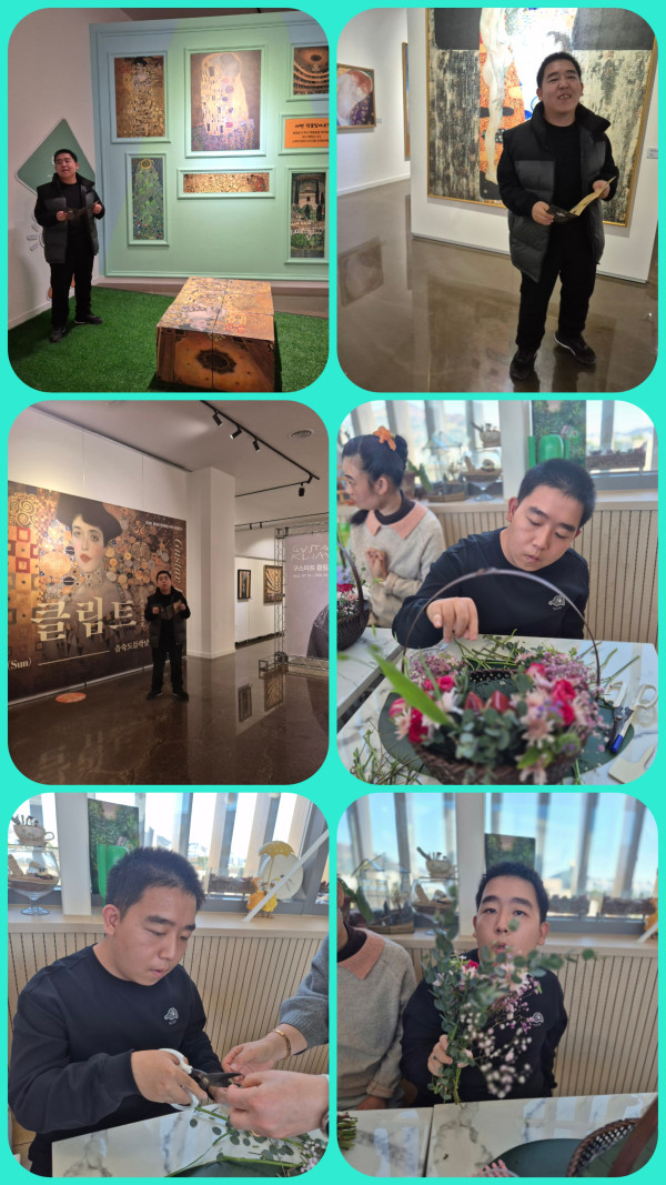 오후에는 꽃꽂이 협력 활동을 다녀왔습니다.아기라팜. 미니장미,국화.시네라리아.안개꽃.보리사초 등을 이용하여 나만의 가을 정원 꾸미기를 하였고,1층 그스타프 클림트전도 보고 왔습니다